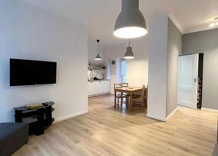 Ferielejlighed ligger i Śródmieście område i Gdynia. Det tager cirka 25 minutter at gå til Muzeum Emigracji. Café Cukiernia Piekarnia Wenta kan man nå på 5 minutters gåtur. Det tager en 10-minutters køretur for at se Experyment Videnskabscenter.